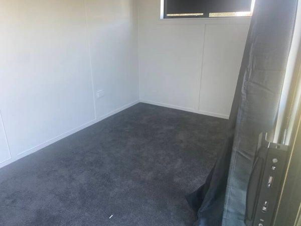 Standard cabins are 3.6m Long by 2.4m wide plus a deck at the front. They fit a queen size bed plus a couple of pieces of furniture. Windows can either be on the left or right hand side or rear wall of the cabin.